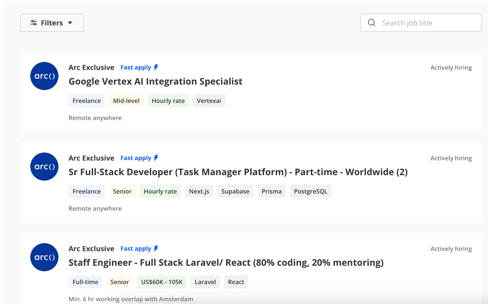 Companies hiring on Arc include well-known brands, startups, and growing tech firms. Job postings are real, and candidates who receive interviews are speaking directly with hiring managers, not intermediaries or automated systems.