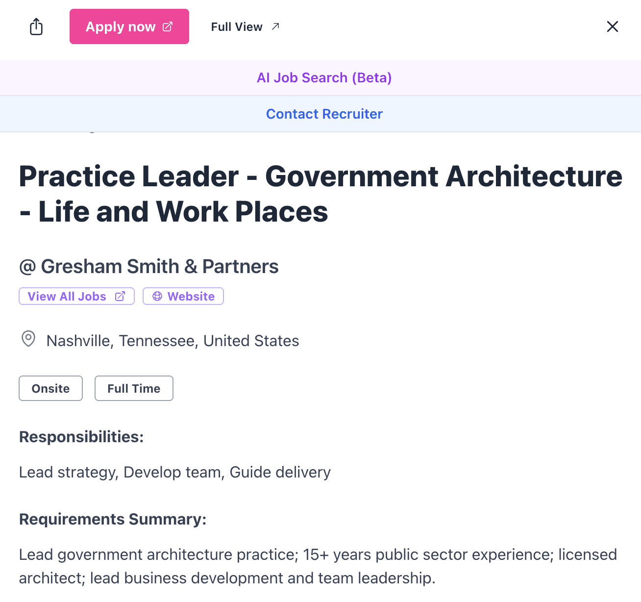 Clicking “Apply Now” sends you directly to the employer’s application system. In some cases, companies may use HiringCafe’s built-in tools, but applications always route appropriately.