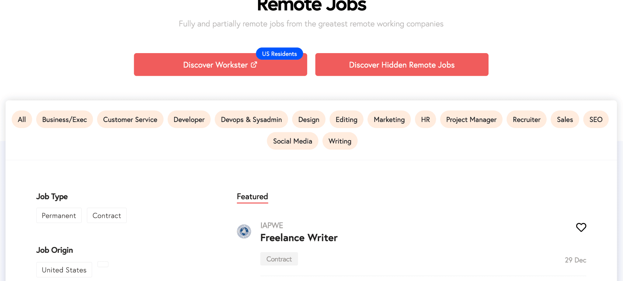 Listings include both senior and mid-level roles, with fewer true entry-level positions than some mass-market boards. Job quality varies because roles are aggregated rather than fully curated. Some listings come from well-known remote-first companies, while others are from startups or smaller organizations.