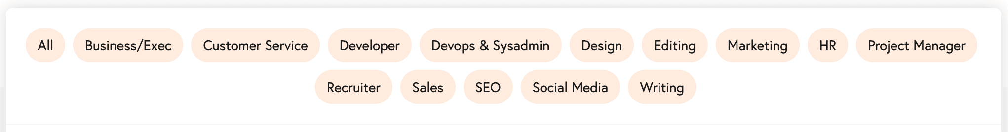 JustRemote focuses primarily on professional and digital roles, with common categories including: