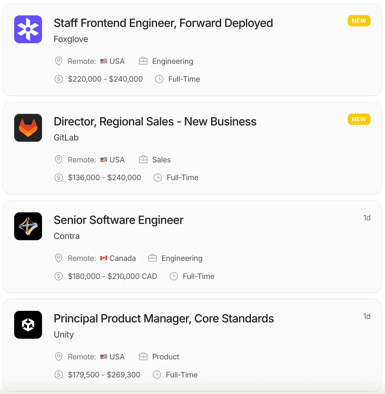 Not every listing is globally remote. Some roles include regional, country, or time zone requirements, which are disclosed when available.